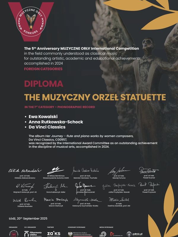 Ewa has performed as a guest artist at the Australian Flute Festival (2019, 2023, 2025) and served as an adjudicator for the 2023 Young Artist Competition. In 2025, she released her debut flute and piano album Her Journey, showcasing works by women composers. In September 2025, "Her Journey" was awarded Musical Eagles Award in Poland, receiving the title of Best Phonographic Record in the Foreign Category. That same year, Ewa appeared twice at the Newcastle Music Festival with the Hourglass Ensemble and soprano Bronwyn Douglas as well as at The 36th Annual Glebe Music Festival.